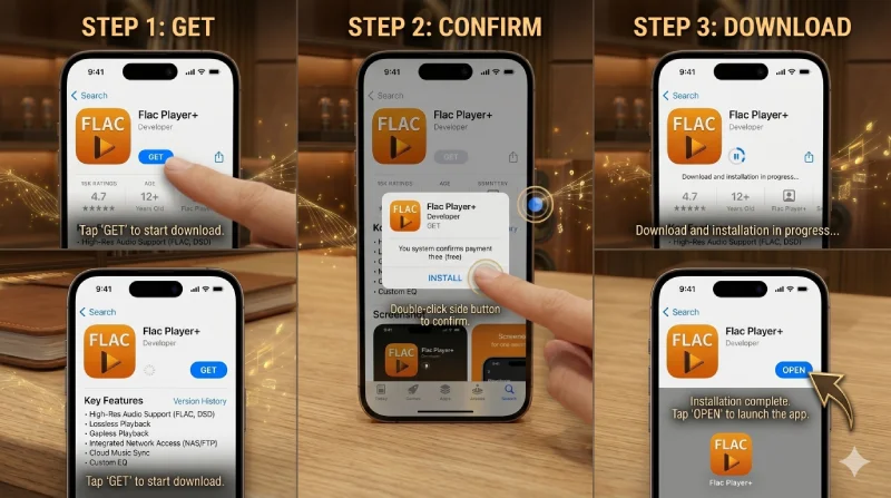 Để chơi loại nhạc này trên CD chúng ta cần phải download phần mềm Flac Player+ trên Appstore của iOS
