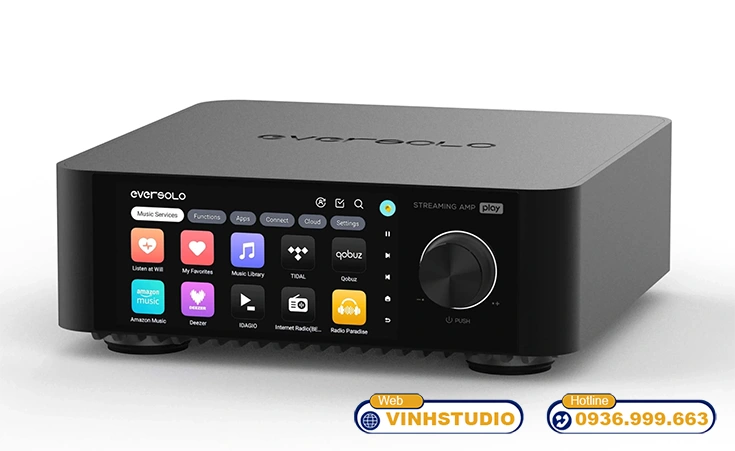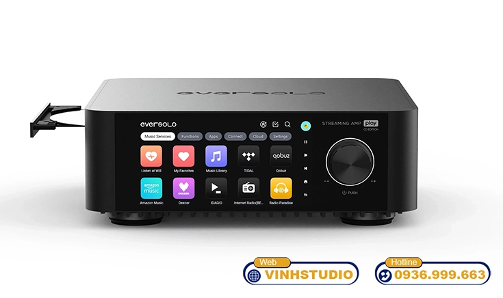 Dòng sản phẩm Eversolo Play Series được tích hợp sẵn nhiều dịch vụ nhạc trực tuyến hàng đầu như TIDAL, Qobuz, Amazon Music, Deezer, KKBOX, TuneIn Radio, Radio Paradise, Presto Music, IDAGIO và nhiều nền tảng khác. Người dùng có thể thưởng thức nhạc chất lượng cao, chuẩn Hi-Res Lossless trực tiếp, mà không cần thêm thiết bị trung gian. Tất cả mang đến trải nghiệm nghe nhạc trọn vẹn, đồng bộ và tiện lợi ở bất kỳ không gian nào.