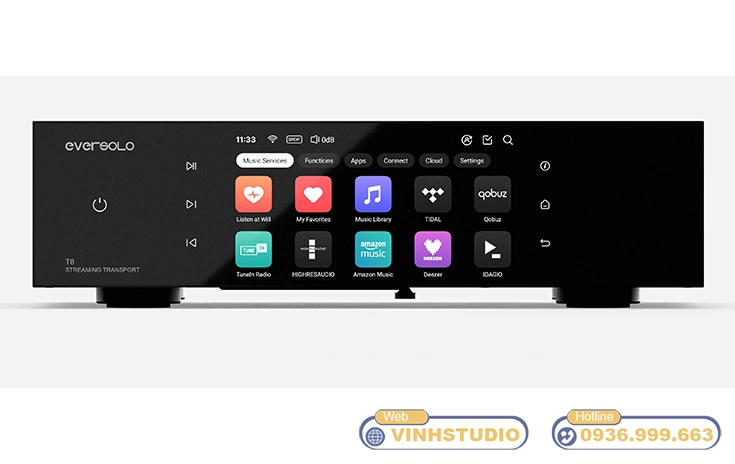 Bạn đang tìm kiếm đầu Streamer Transport Eversolo T8 chính hãng với giá cả hợp lý và dịch vụ uy tín? Vinhstudio là địa chỉ lý tưởng cho những tín đồ yêu thích âm nhạc tại Hà Nội. Chúng tôi chuyên cung cấp các sản phẩm âm thanh – nhạc số, đặc biệt là các dòng đầu phát nhạc số cao cấp từ những thương hiệu nổi tiếng như Eversolo Audio, WiiM Audio, Cambridge Audio.