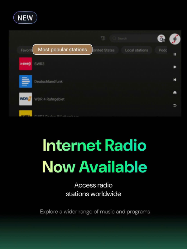 Internet Radio: Bổ sung chức năng dịch vụ nhạc từ Airable Radio.