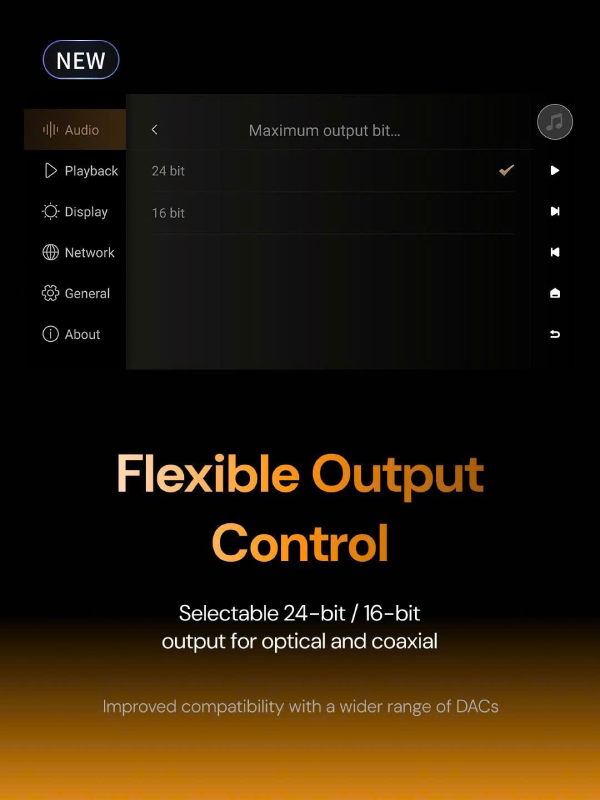 Hiển thị chi tiết (Play Details): Tăng độ sắc nét và rõ ràng cho các thông tin về định dạng âm thanh (Audio Format) và tần số lấy mẫu (Resolution).